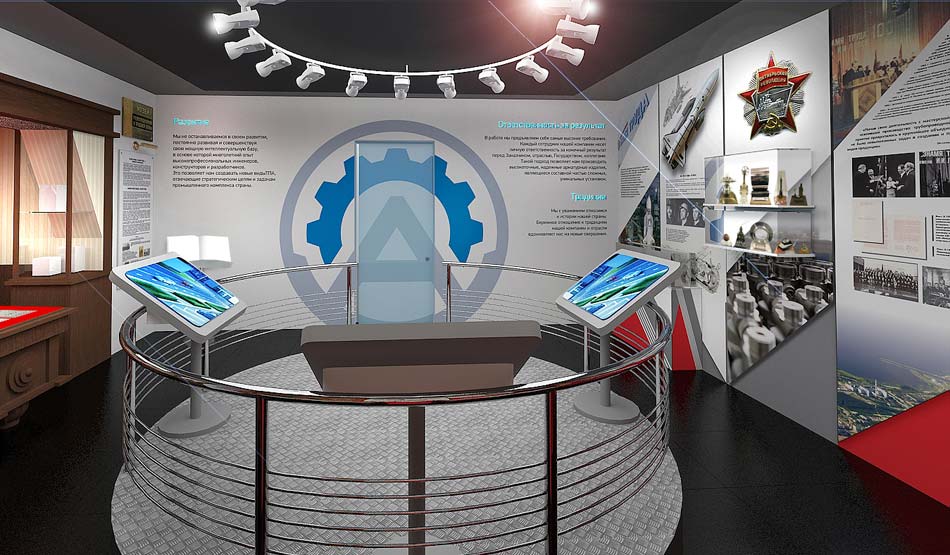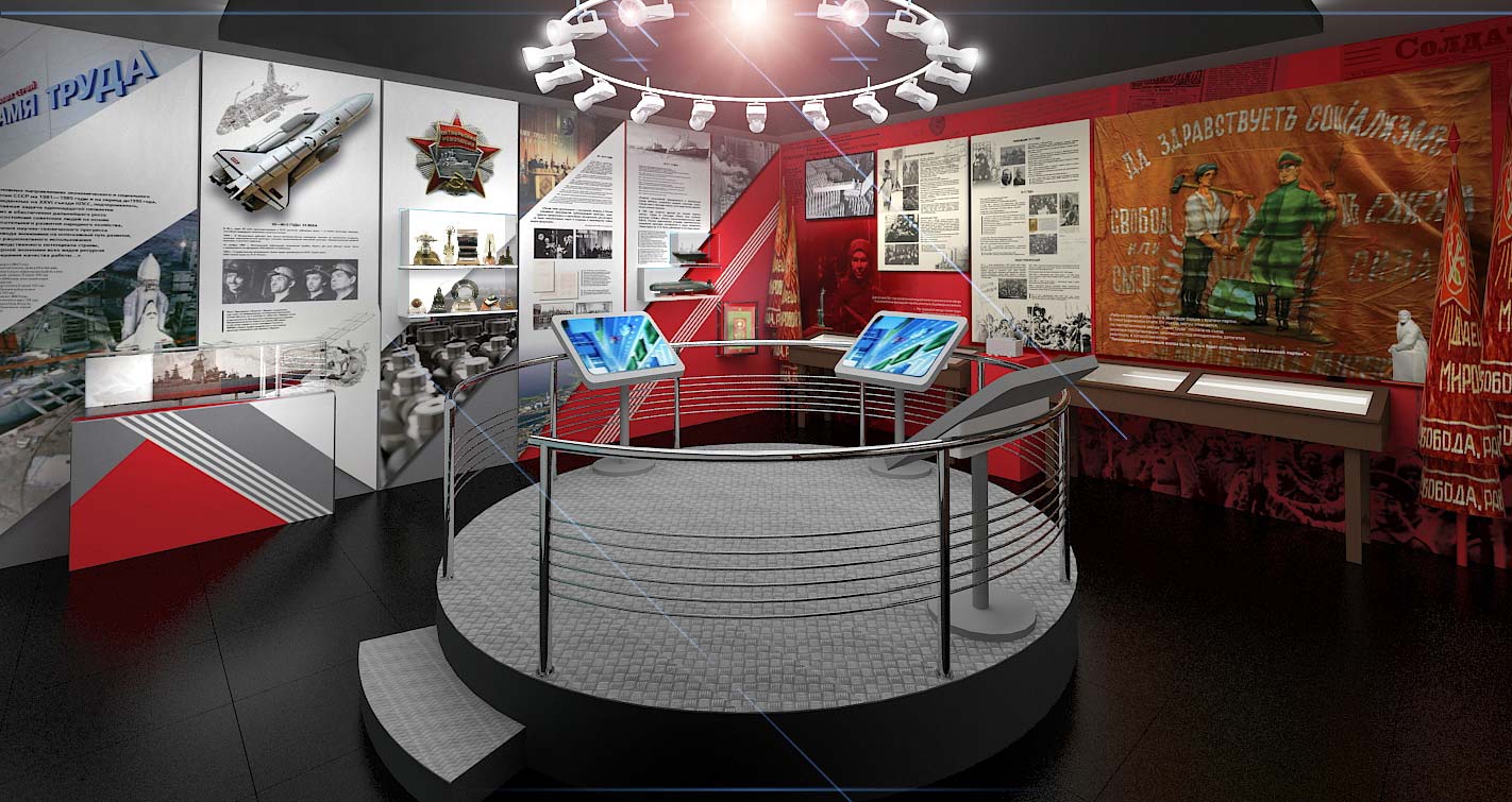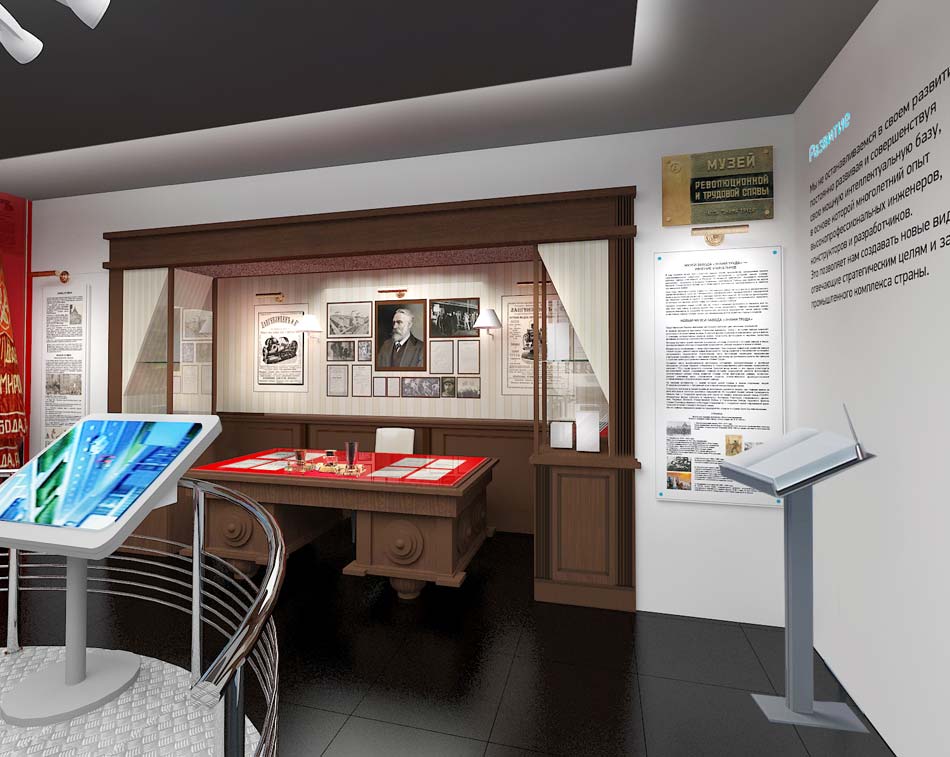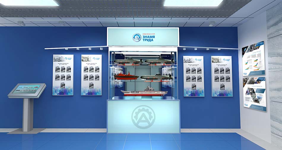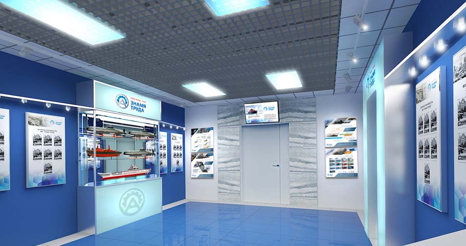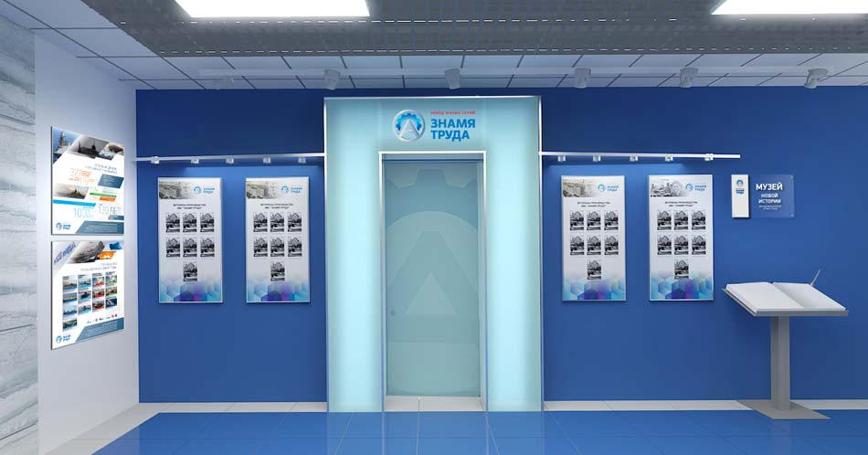 Представленная экспозиция занимает два связанных помещения. В первом находится выставка «Трилогия времени». Здесь с историей завода знакомят экспонаты и интерактивные экраны. В краткой форме отражены основные вехи, даты и факты. С помощью интерактивных экранов можно посмотреть фотографии и чертежи, полистать архивные документы и рукописи воспоминаний. Витрины выставки хранят важные документы, которые относятся к истории завода и вещи, принадлежавшие некогда сотрудникам предприятия, ценные подарки и знаки отличия. Вторая часть экспозиции — зона «Достижения». Она отражает новый этап развития завода «Знамя труда», демонстрируя новые возможности, темпы развития и технический потенциал сегодняшнего предприятия. Значительная часть экспозиции посвящена передовикам и ветеранам производства — тем самым людям, чья жизнь на протяжении многих лет связана с отраслью арматуростроения и именем «Знамя Труда». Дизайнер Павел Палей, 2015 год.