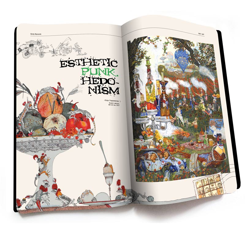 Петр Фролов. "ЖИВОПИСЬ. ГРАФИКА. КЕРАМИКА" В это издание вошли все основные работы автора. Книга состоит из разделов “Игра и страсть”,”Охота и зимние праздники”,”Над городом” ,” Путешествия” , “Реклама событий которых не было”,”Романтическое безделье”, “Сбежавшие предметы” и “Керамика”.В альбоме 256 страниц. Вступительную статью написал , замечательный прозаик, искусствовед, лауреат премия Ясная поляна Алексей Иванов (Географ глобус пропил, Блудо и мудо, Золото бунта, Хребет России) .Книга отпечатана в Гонконге. Твердый переплет, 170 г/м, 256 стр. Издательство “Владимир Даль” 2011 г.