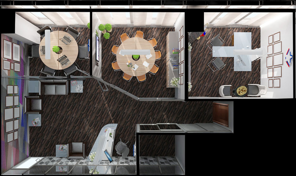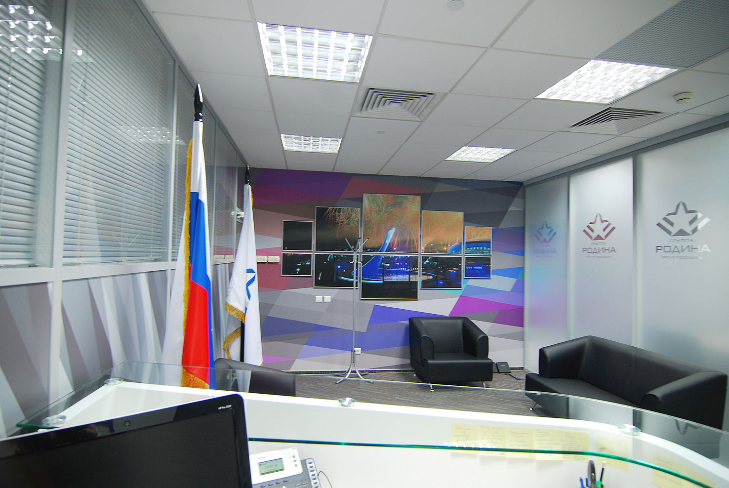 При формировании интерьера офиса Группы “Родина” основной задачей было декорирование