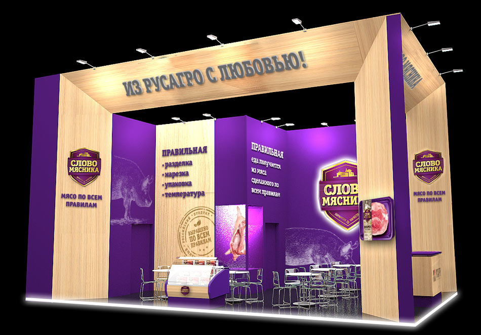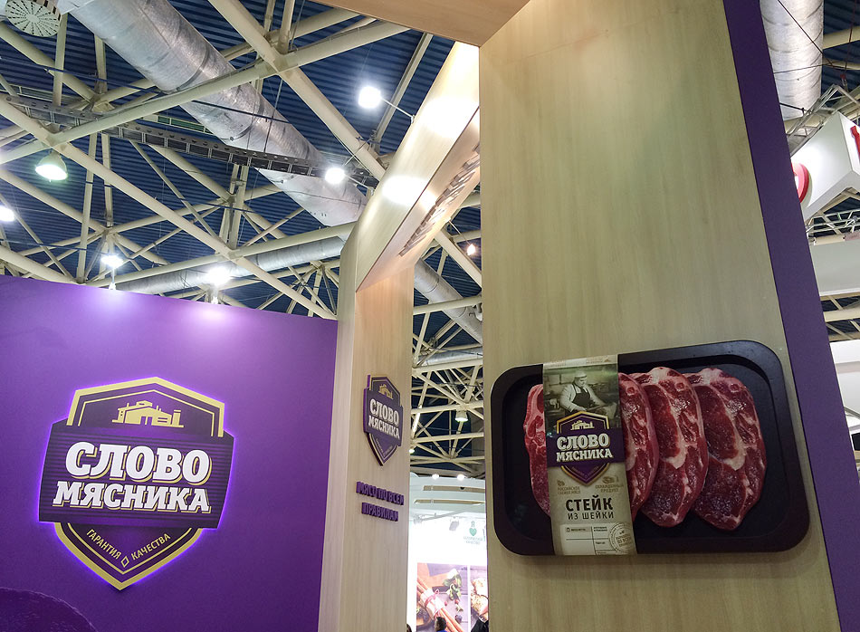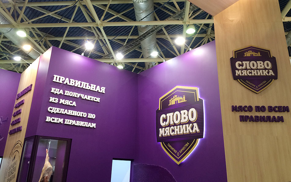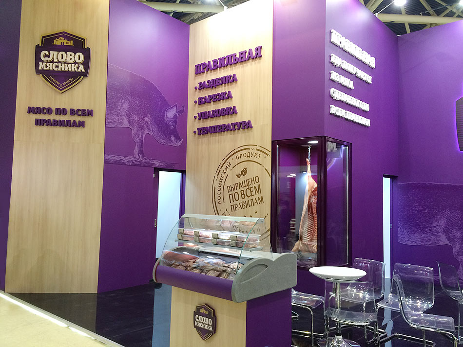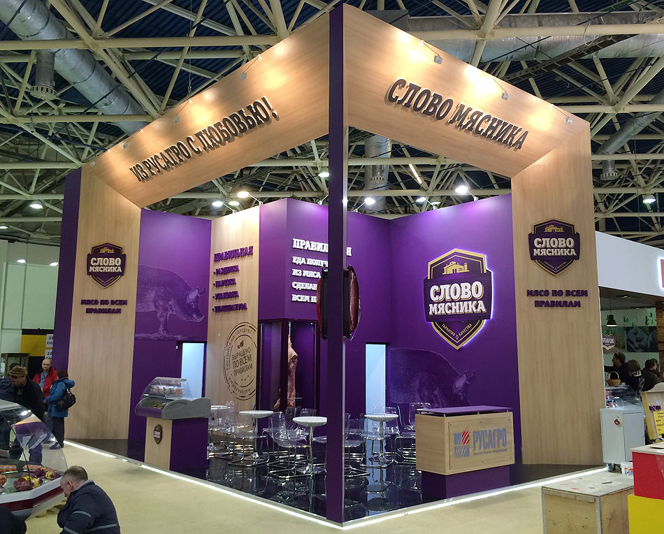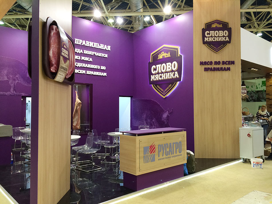 Дизайн и строительство стенда РУСАГРО, бренд "Слово мясника"