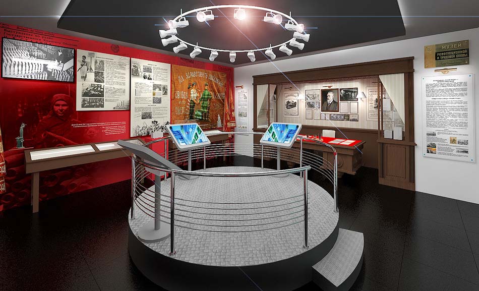 Представленная экспозиция занимает два связанных помещения. В первом находится выставка «Трилогия времени». Здесь с историей завода знакомят экспонаты и интерактивные экраны. В краткой форме отражены основные вехи, даты и факты. С помощью интерактивных экранов можно посмотреть фотографии и чертежи, полистать архивные документы и рукописи воспоминаний. Витрины выставки хранят важные документы, которые относятся к истории завода и вещи, принадлежавшие некогда сотрудникам предприятия, ценные подарки и знаки отличия. Вторая часть экспозиции — зона «Достижения». Она отражает новый этап развития завода «Знамя труда», демонстрируя новые возможности, темпы развития и технический потенциал сегодняшнего предприятия. Значительная часть экспозиции посвящена передовикам и ветеранам производства — тем самым людям, чья жизнь на протяжении многих лет связана с отраслью арматуростроения и именем «Знамя Труда». Дизайнер Павел Палей, 2015 год.