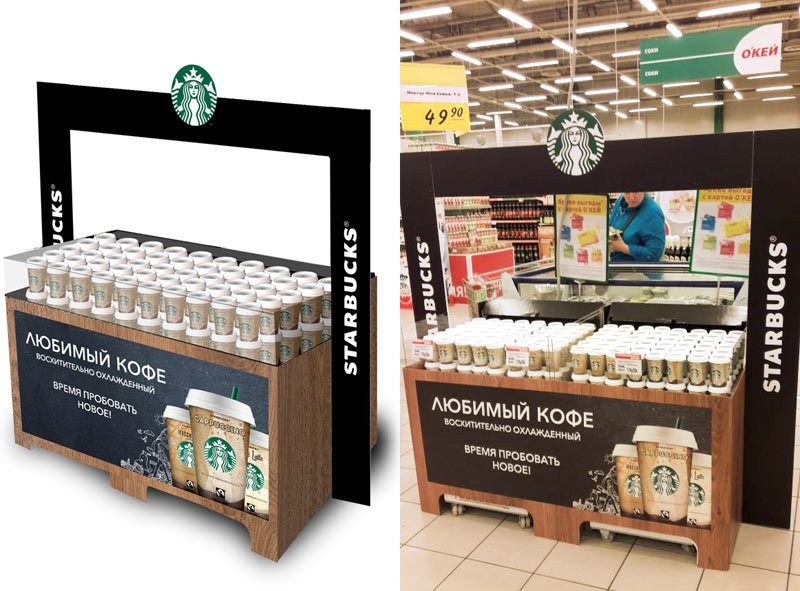 Оформление золодильника STARBUCKS для сети ОКЕЙ