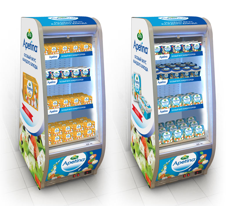 Рекламная кампания сыра Арла Натура 2018 года. Холодильник-гондола в ГМ Окей