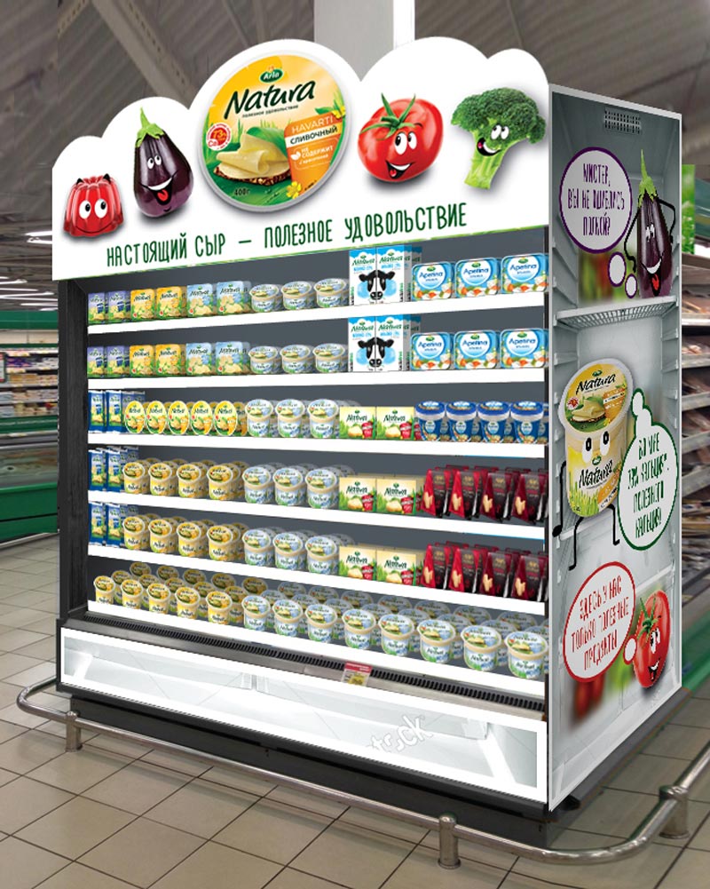 Рекламная кампания сыра Арла Натура 2018 года. Торцевая выкладка