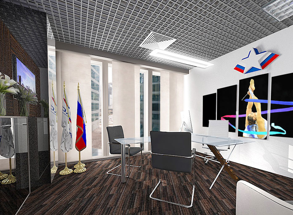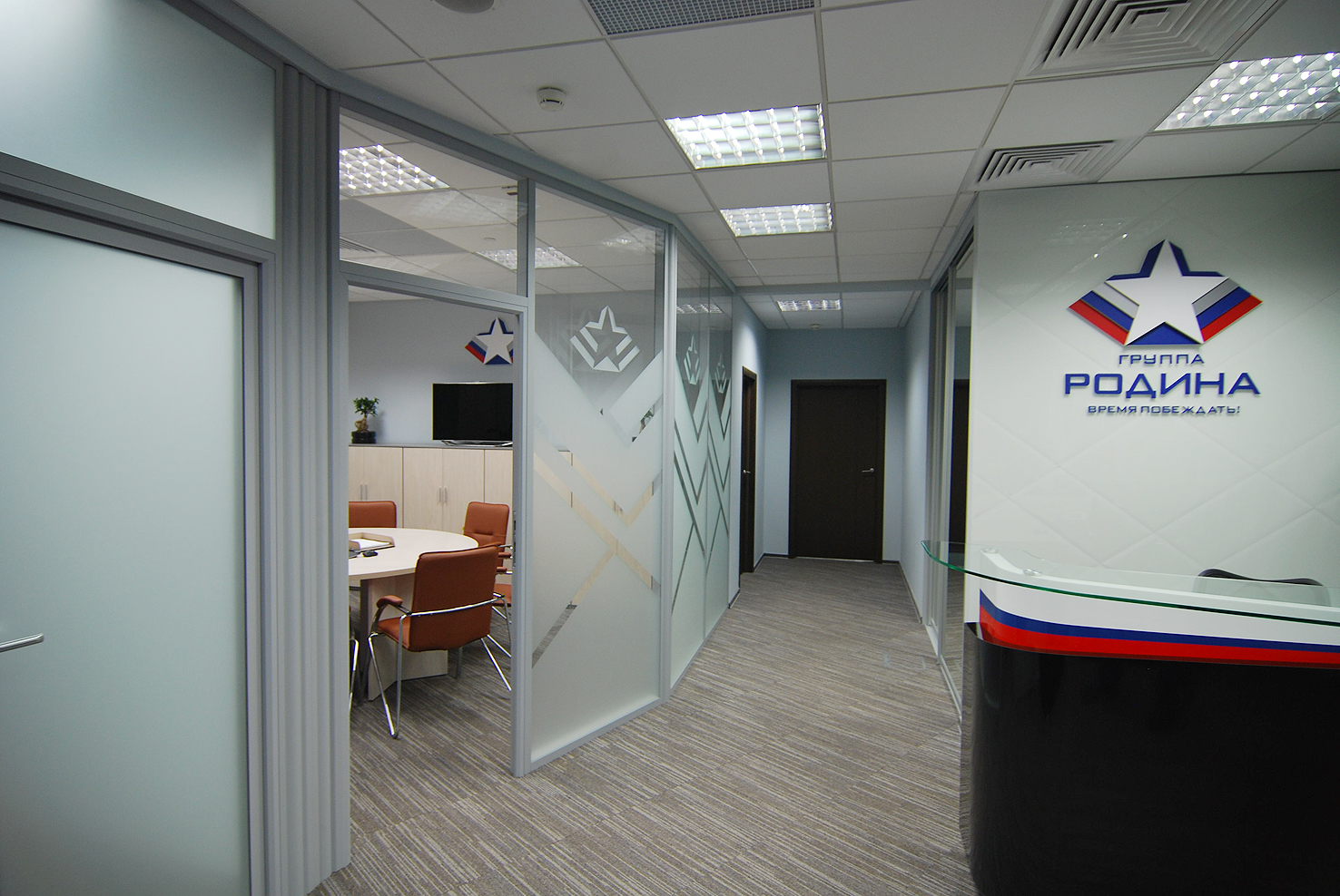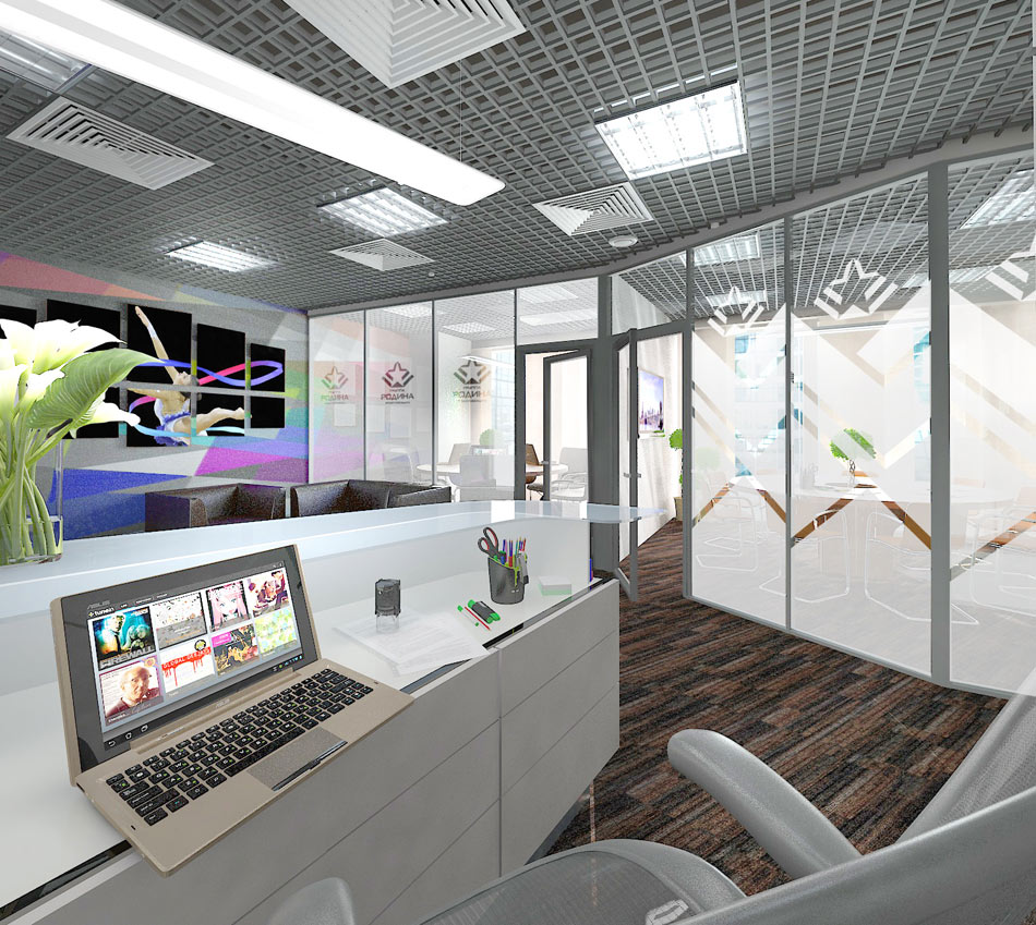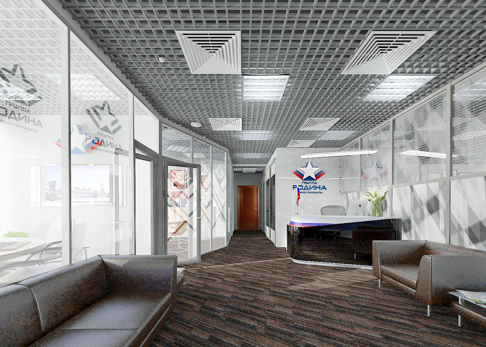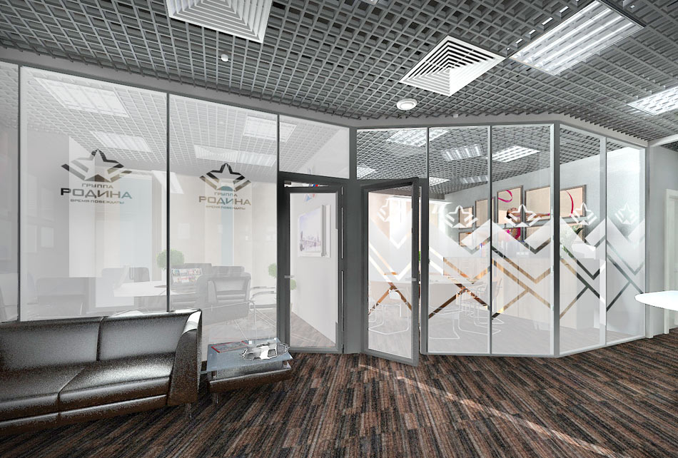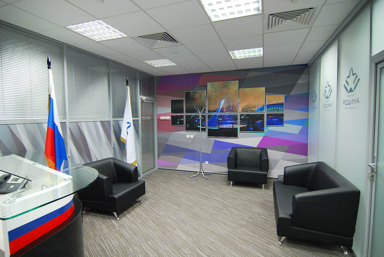 При формировании интерьера офиса Группы “Родина” основной задачей было декорирование
