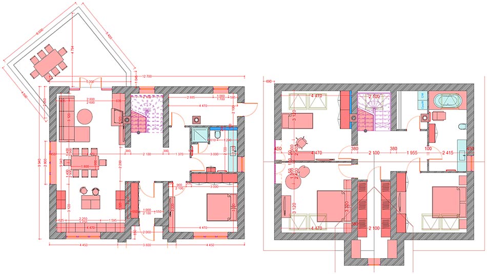 Для молодой семьи из 3 человек был разработан проект строительства небольшого загородного дома. Общая площадь без учета пристроек и вспомогательных помещений составила 250 м/кв. На первом этаже расположилась гостиная, совмещенная с кухней и каминная зона. Второй этаж - спальни хозяев и гостевые комнаты. Реализацией проекта владельцы дома занимались самостоятельно, отказавшись от авторского надзора.